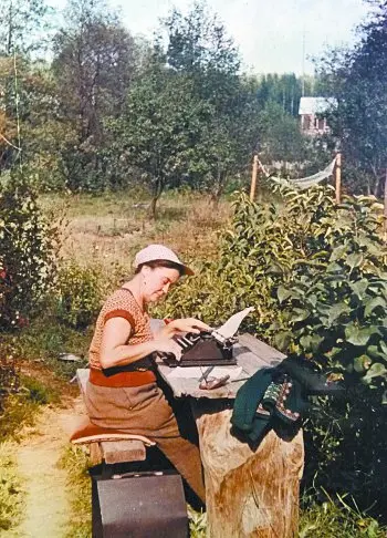 Наталья Решетовская работает с рукописями Солженицына на даче в Борзовке. Середина 1960-х
