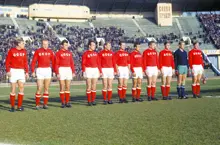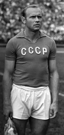 | 1966 год. Сборная СССР перед началом матча со сборной Турции. Второй слева – Эдуард Стрельцов | |
