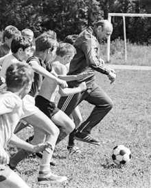 | Эдуард Стрельцов на тренировке со своими воспитанниками, 1987 год | |