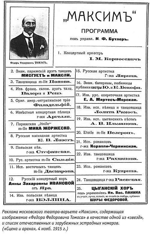 После начала войны в модных и дорогих заведениях даже стали появляться новые типы богатых клиентов. На некоторых была военная форма, хотя они и были «героями» тыла, а не передовой – начальниками снабжения, благополучно присваивавшими кругленькие суммы от потоков провианта, проходивших через их руки; военными врачами, продававшими освобождения сыновьям богатых родителей. И было ещё, как на всякой войне, множество предпринимателей, проворно делавших деньги при помощи контрактов на снабжение армии всем, чем можно, – от сапог и мясных консервов до высоковзрывчатых веществ. «Максим» особенно в эти годы подтвердил свой статус «любимого места москвичей» согласно слогану, многократно использованному Фредериком в рекламе.