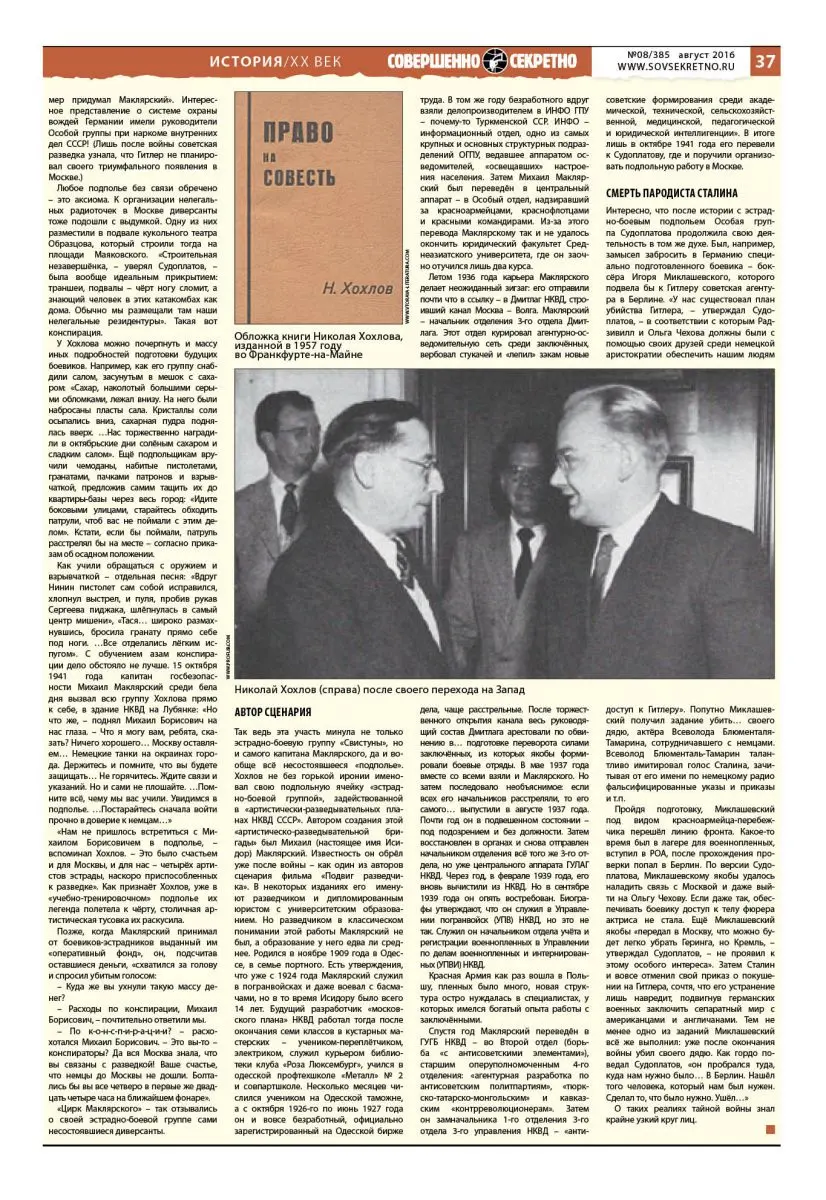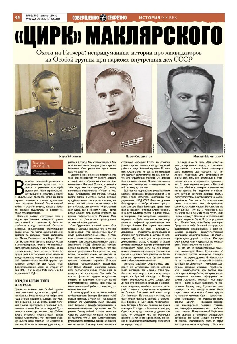 То, что это не художественный вымысел, подтвердил Павел Судоплатов: «К возмездию против немецкого командования под руководством М. Маклярского мы готовили и актёрский ансамбль во главе со Свистуном – Николаем Хохловым, позднее ставшим перебежчиком. Планировалось, что Хохлов вместе с группой акробатов, выступая перед немецкими высшими офицерами, во время эстрадного номера – жонглирования – должны были забросать их гранатами». Своему сыну Судоплатов тоже поведал: «У нас, между прочим, была одна очень интересная боевая группа из четырёх человек. Один – артист-свистун (специалист по художественному свисту). Другая – женщина-жонглёр. Она жонглировала боевыми гранатами, закамуфлированными под… небольшие поленья. Представляете? Идёт концерт, скажем, в немецком офицерском собрании. На сцене изящно жонглирует своими «полешками» дама. И вдруг эти «дрова» летят в публику… Этот номер придумал Маклярский». Интересное представление о системе охраны вождей Германии имели руководители Особой группы при наркоме внутренних дел СССР! (Лишь после войны советская разведка узнала, что Гитлер не планировал своего триумфального появления в Москве.)