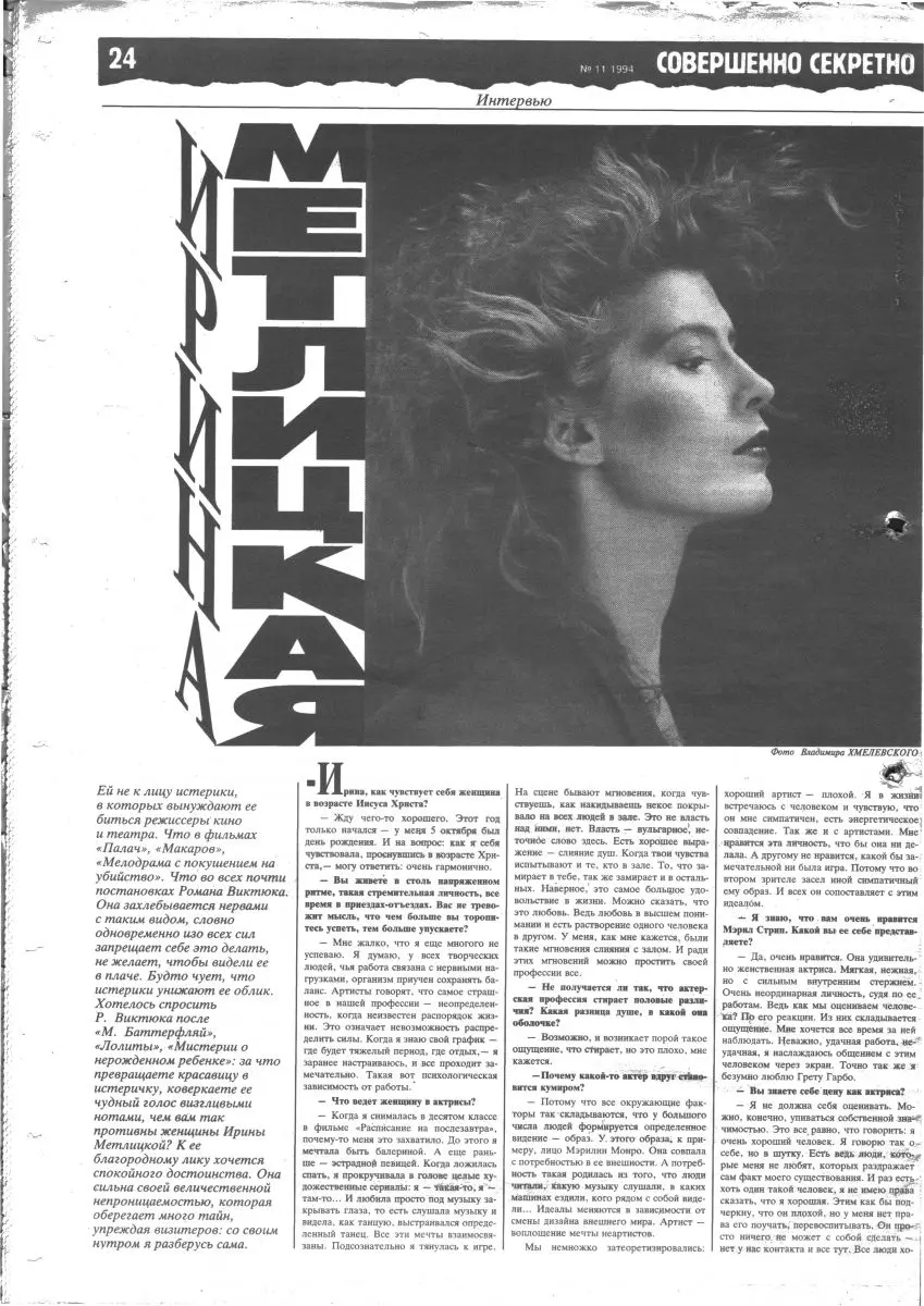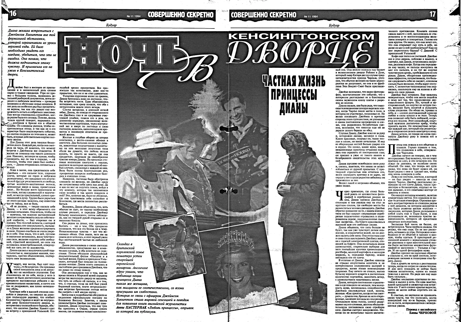 В ноябре 1994 года газета «Совершенно секретно» рассказывала о личной жизни принцессы Дианы