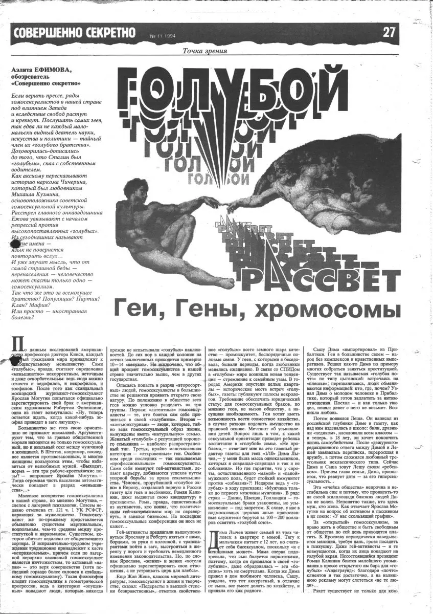 Из статьи Аэлиты Ефимовой «Голубой рассвет: геи, гены, хромосомы»