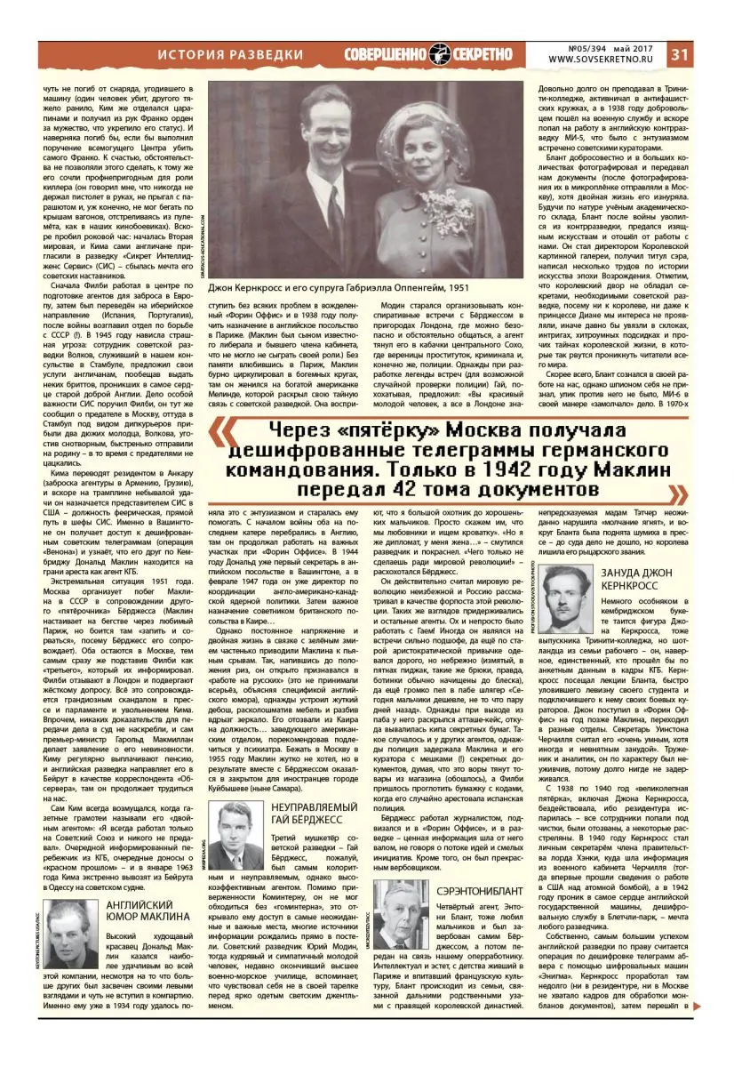 С «пятёркой» работали разные люди: иногда грубоватые, иногда мягкотелые, иногда не шибко сведущие; разведка – это не организация безукоризненных штирлицев, шагающих от Эвереста к Эвересту. Поговаривают, что даже в Кремле, как и на солнце, бывают пятна. Тем не менее все они блестяще обеспечивали работу с кембриджцами.