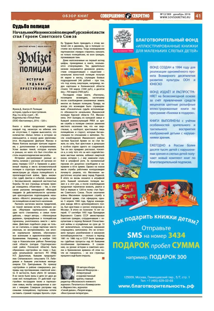 Жуков Д., Ковтун И. Полицаи: история, судьбы и преступления. Изд. 3-е, испр. и доп. – М.: Издательство «Пятый Рим» (ООО «Бестселлер»), 2016. – 320 c.