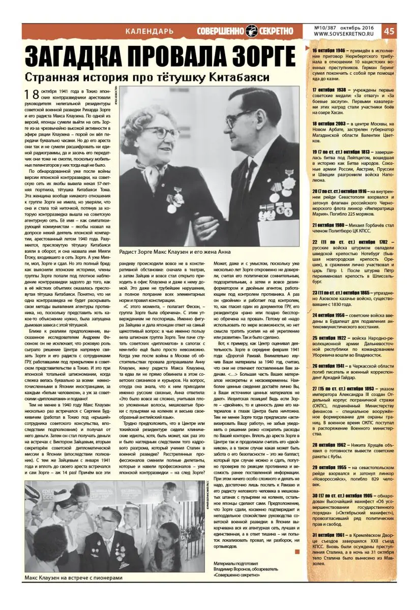 18 октября 1941 года в Токио японские контрразведчики арестовали руководителя нелегальной резидентуры советской военной разведки Рихарда Зорге и его радиста Макса Клаузена. По одной из версий, японцы сумели выйти на сеть Зорге из-за чрезвычайно высокой активности в эфире рации Клаузена – порой он вёл передачи буквально часами. Но до его ареста они так и не сумели расшифровать ни единой радиограммы, да и засечь его передатчик они тоже не смогли, поскольку мобильных пеленгаторов у них тогда ещё не было.