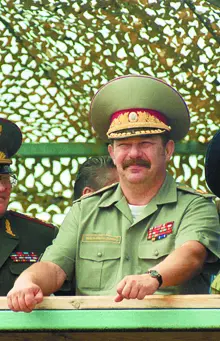 Главком ВВС России в 1998–2002 гг. генерал армии Анатолий Корнуков. Министр обороны Украины в 1996–2001 гг. генерал армии Александр Кузьмук (внизу) |