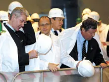| 20 декабря 2009 года. Запуск второго энергоблока Волгодонской АЭС. Слева направо в первом ряду: вице-премьер Сергей Собянин, гендиректор «Росатома» Сергей Кириенко и полномочный представитель президента в Южном федеральном округе Владимир Устинов | |