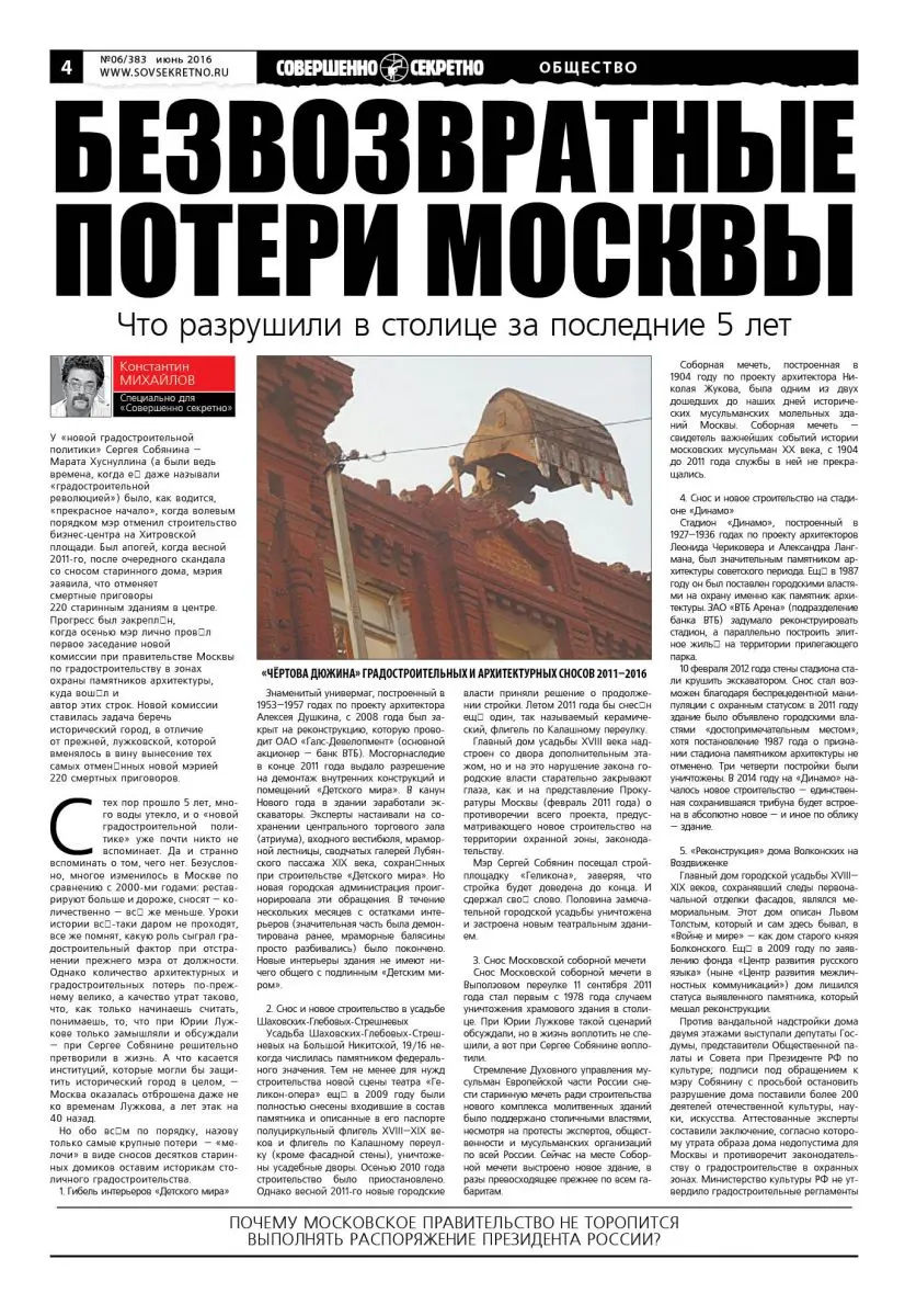 Снос Московской соборной мечети в Выползовом переулке 11 сентября 2011 года стал первым с 1978 года случаем уничтожения храмового здания в столице. При Юрии Лужкове такой сценарий обсуждали, но в жизнь воплотить не спешили, а вот при Сергее Собянине воплотили.