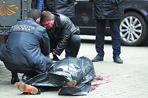 Произошло это в Киеве, на пересечении бульвара Тараса Шевченко и Пушкинской улицы, на углу фешенебельного отеля «Премьер Палас», 23 марта 2017 года в 11:23 по местному времени. Роль современного Хлестакова сыграл – а точнее, прожил – беглый российский экс-депутат Денис Вороненков, но в красные кроссовки был обут его убийца, пристреленный охранником. (С равным успехом киллер мог выйти на мокрое дело и в узбекском халате, и с оранжевым ирокезом, но таковы уж, наверное, законы Realtheater.)