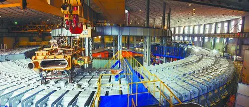 Синхрофазотрон ОИЯИ весом в 36 000 тонн и длиной окружности около 190 м (вид на магниты сверху), введённый в строй в 1957 году в г. Дубне, СССР