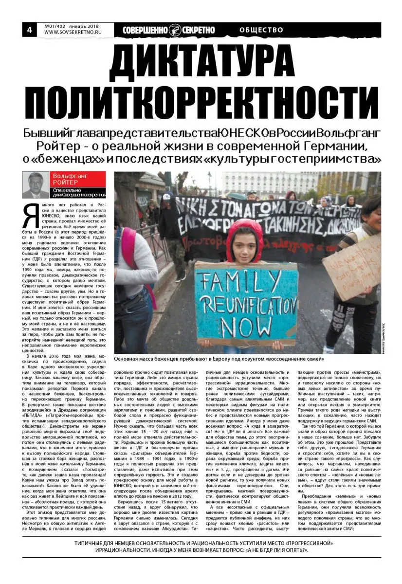 Бывший глава представительства ЮНЕСКО в России Вольфганг Ройтер – о реальной жизни в современной Германии, о «беженцах» и последствиях «культуры гостеприимства»