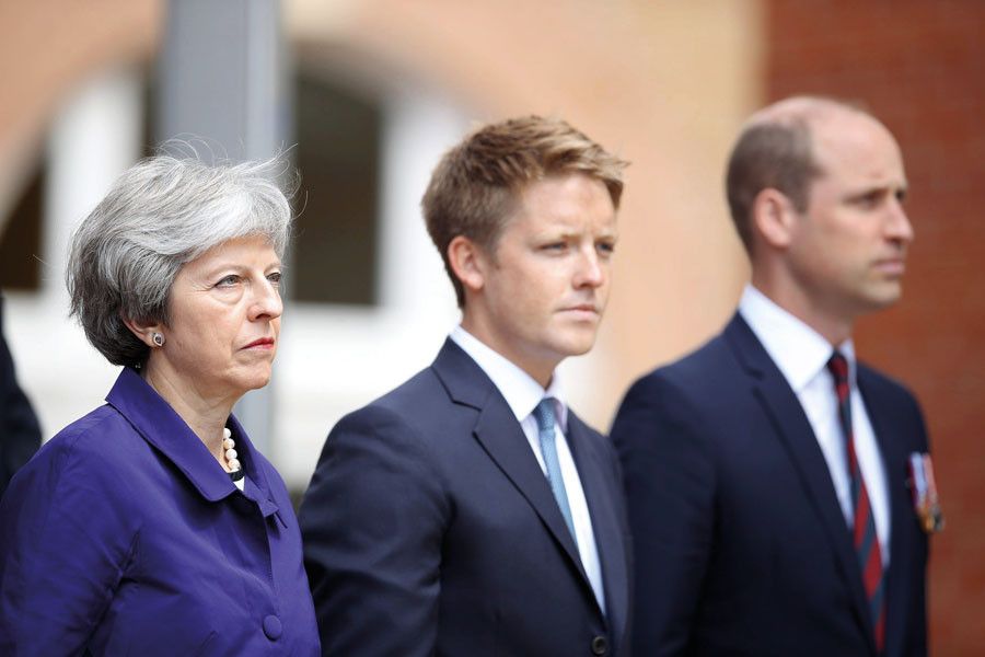 Седьмой герцог Вестминстерский Хью Кавендиш Гросвенор (в центре) уже вошел в высшие эшелоны власти (слева — бывшая премьер-министр Тереза Мэй).