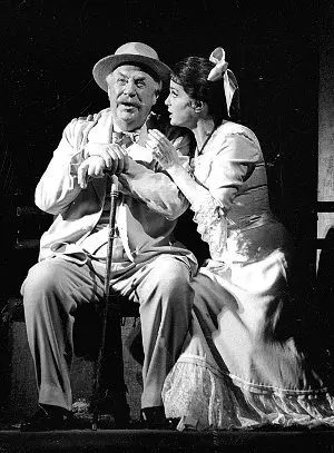 Михаил Жаров в роли Лыняева и Элина Быстрицкая в роли Глафиры (спектакль Малого театра «Волки и овцы», 1973)
