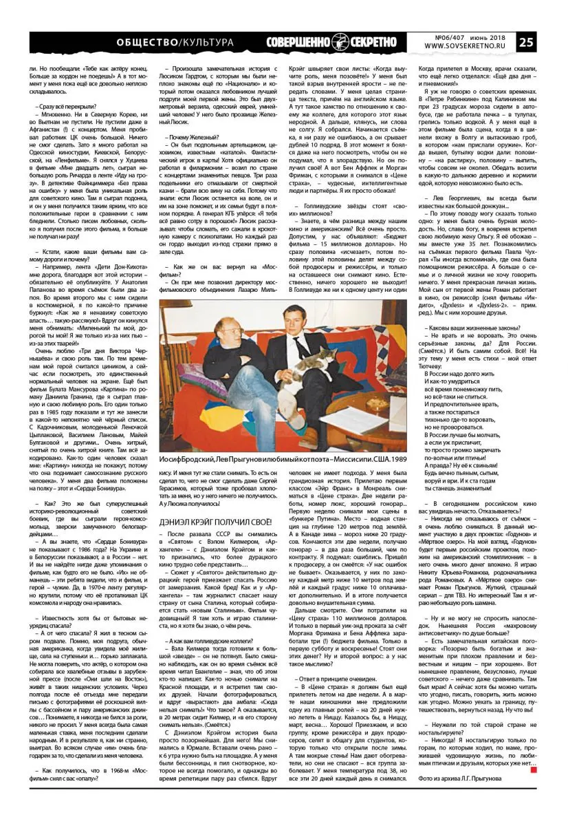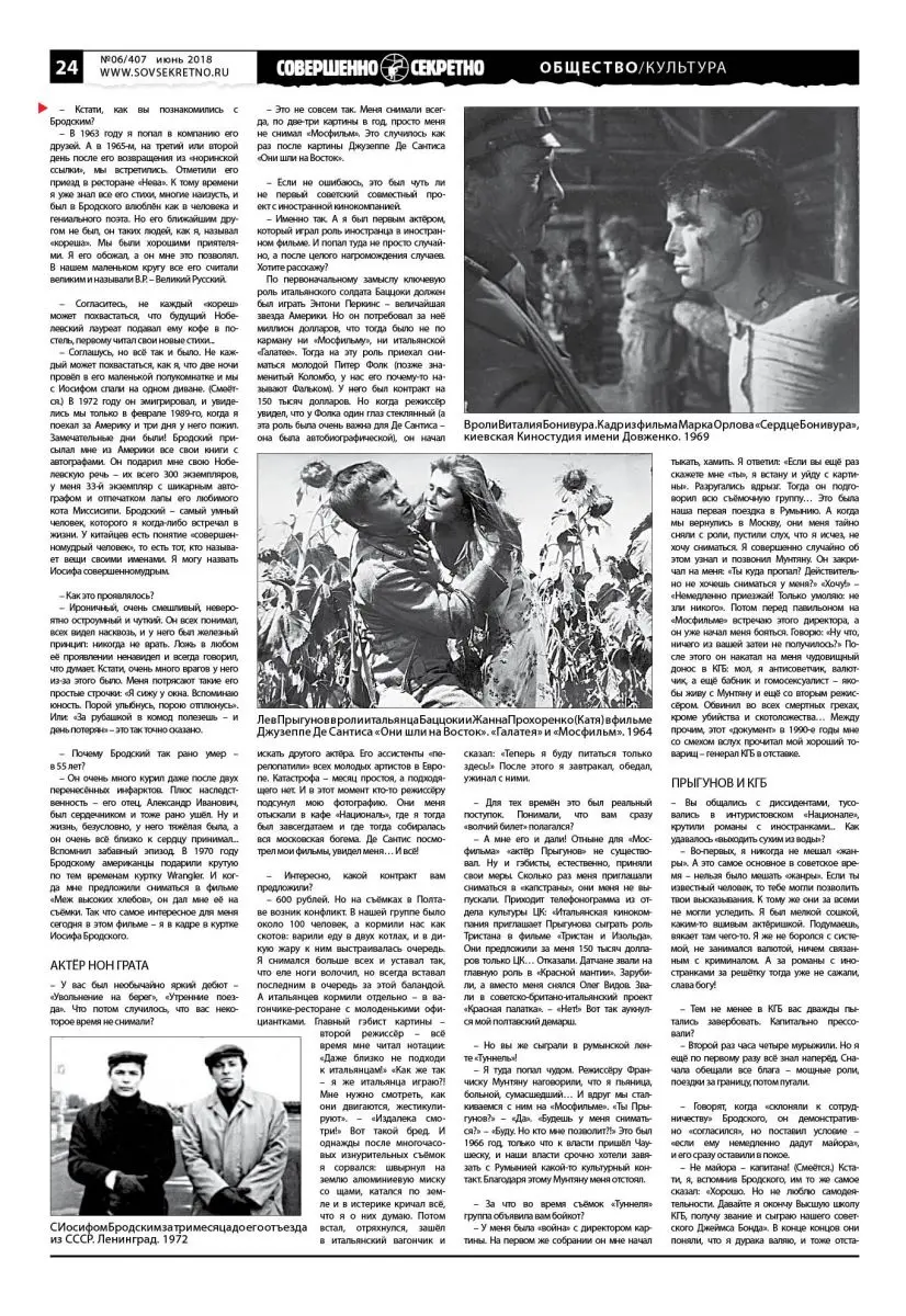 – Не майора – капитана! (Смеётся.) Кстати, я, вспомнив Бродского, им то же самое сказал: «Хорошо. Но не люблю самодеятельности. Давайте я окончу Высшую школу КГБ, получу звание и сыграю нашего советского Джеймса Бонда». В конце концов они поняли, что я дурака валяю, и тоже отстали. Но пообещали: «Тебе как актёру конец. Больше за кордон не поедешь!» А в тот момент у меня пока ещё все довольно неплохо складывалось.