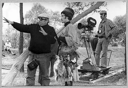 Режиссёр Георгий Калатозишвили (слева) и В. Конкин в роли Дмитрия Оленина на съёмках фильма «Кавказская повесть» по мотивам повести Л.Толстого «Казаки». Тбилиси. 1978
