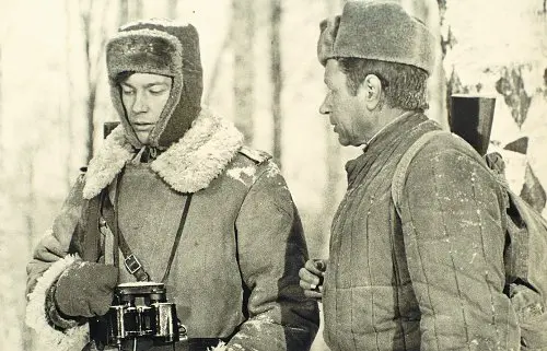 В. Конкин (младший лейтенант Суслин) и Л. Быков (ефрейтор Святкин) в военной драме Леонида Быкова «Аты-баты, шли солдаты…». Киностудия имени А. Довженко. 1976