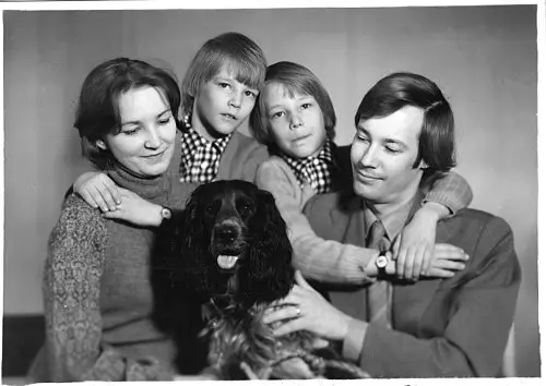 С женой Аллой, сыновьями Святославом, Ярославом и спаниелем Степаном. 1982
