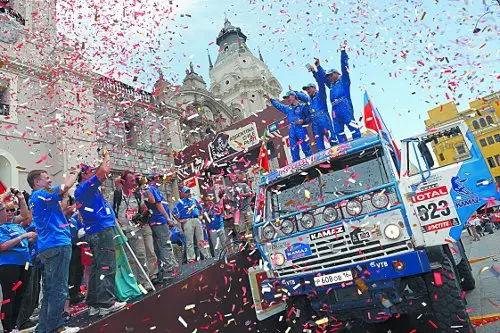 Трасса южноамериканской многодневки была сложной, а порой и непредсказуемой. Участников гонки – а стартовала она впервые в своей истории не с первого дня Нового года, а 6 января – встретили ещё неизведанные перуанские песчаные дюны, боливийское высокогорье и аргентинское бездорожье. 8000 километров высшей категории сложности. А потому совсем не случайно таким высоким было количество участников гонки во всех категориях. На старт «Дакара» вышли представители 54 стран мира. В категории спортивных грузовиков боролись за победу 42 машины. Признанные лидеры грузового зачёта – КамАЗ, Iveco, Tatra, Renault, Scania, Liaz, МАЗ… До финиша добрались лишь десять из них.