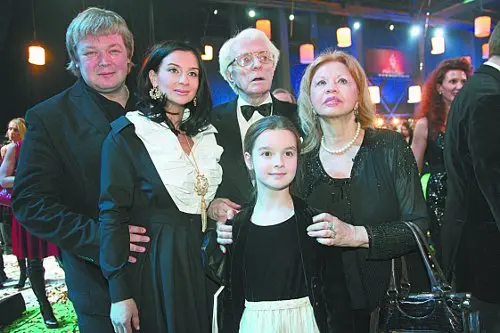 Семья Стриженовых: Александр, Екатерина, Олег Александрович с супругой Лионеллой Ивановной, Александра (на переднем плане) на вручении премии «Золотой орёл». Январь 2010
