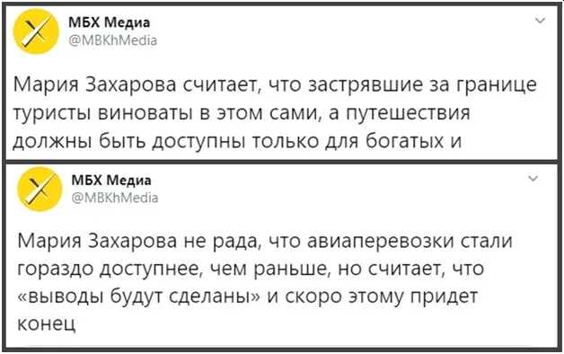 Именно тогда в Instagram прошли онлайн-дебаты между Захаровой и Вероникой Бирман, выступающией гендиректором турфирмы Exotic Time. Диалог состоялся после того, как предпринимательница опубликовала открытое письмо якобы от имени всех туроператоров, в котором также прослеживается изначальный тезис рассмотренного выше вброса.