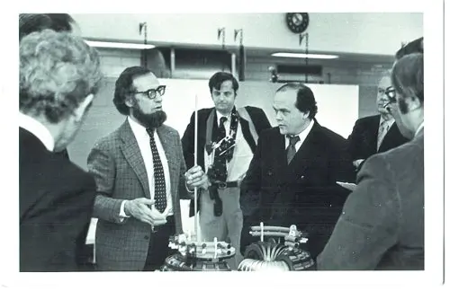 С Гарольдом Фюртом (второй слева), директором Принстонской лаборатории физики плазмы, разрабатывающей технологии токамаков. Принстон. 1973