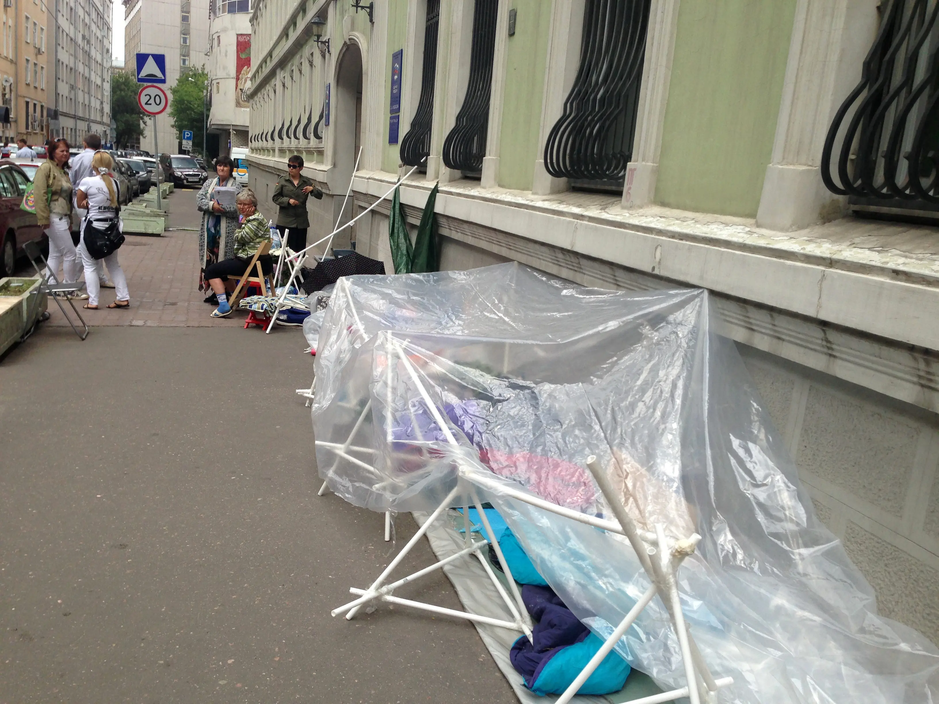 — Я голодаю уже 22 дня. Раньше у меня был бизнес в Когалыме, который у меня незаконно отобрали. А когда я начала доказывать, что это было неправомерно, то кто-то поджег мой дом. На тот момент там находились двое маленьких детей. Я пережила два суда и все-таки доказала, что никакого экономического преступления я не совершала. Я обращалась к мэру и губернатору с просьбой о временном жилье – оба отказали. И на целых 5 лет я оказалась бомжом с тремя детьми. Все это время мы просто шатались по Москве. Я требую от властей только то, что положено мне по закону — или квартиру, или просто деньги на жилье.
