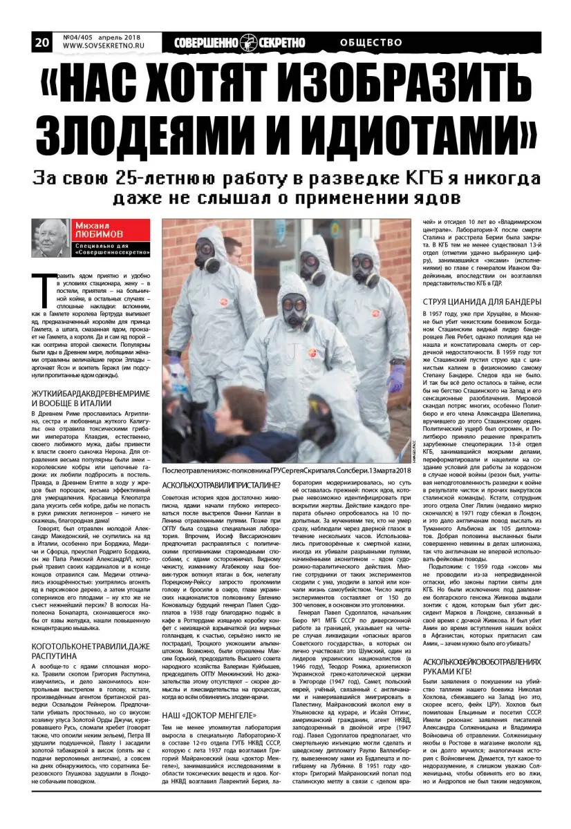 За свою 25-летнюю работу в разведке КГБ я никогда даже не слышал о применении ядов
