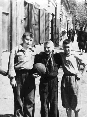 Саша (в центре) с друзьями во дворе своего дома. Середина 1950-х