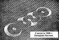 Можно еще долго гадать, каким образом появляются сложные пиктограммы, но, похоже, все точки над i расставила сенсационная видеосъемка, которая была сделана 11 августа 1996 года в местечке Оливер-Кастл (Англия). Ее представил в ноябре того же года в Финляндии участникам Первой конференции по исследованию внеземного разума и будущего человечества уже известный нам Колин Эндрюс. Видеокамера бесстрастно зафиксировала пролет над полем трех пар светящихся шаров. Сначала два шара, двигаясь по сложной траектории, казалось, наметили контуры будущего «полотна». Затем их маневр повторила вторая пара шаров, и буквально на глазах (за 1,5–2 секунды) растения улеглись, создав идеальную пиктограмму. И тут же, как бы проверяя качество работы, над рисунком пролетела третья пара «шаровых молний».