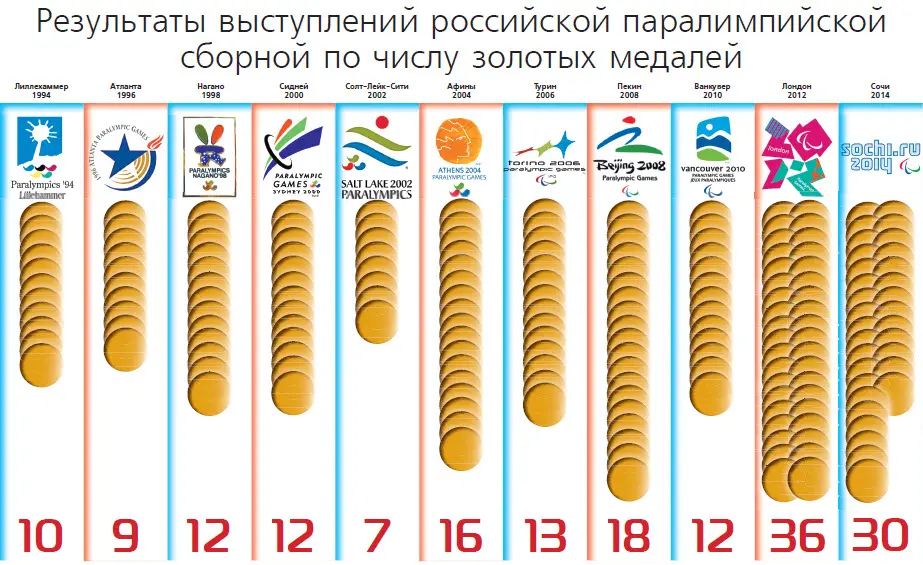 P.S. В одном из газетных интервью главный тренер российской паралимпийской сборной по плаванию Игорь Тверяков объяснил, что феноменальные успехи российских пловцов в Лондоне стали возможны благодаря уникальной методике их подготовки. «Когда мы поняли, что именно и как надо делать, у нас появилось такое количество медалей», – заявил тренер. По словам наших осведомленных источников, подобные методики сегодня все чаще применяются не только в плавании, но и других спортивных дисциплинах. Доказательство тому – необъяснимый лавинообразный рост числа завоеванных наград на последних паралимпиадах. Так, если в 2008 году в Пекине наша сборная завоевала 18 золотых медалей, то в 2012 году в Лондоне – уже 36. Инновационные формы подготовки спортсменов с ограниченными возможностями выстрелили и на зимней Паралимпиаде в Сочи: 30 высших наград против 12 завоеванных золотых медалей четырьмя годами ранее в Ванкувере. Более чем двукратный прирост! Остается только догадываться, какие результаты наша сборная продемонстрирует на следующей Паралимпиаде в Рио-де-Жанейро.