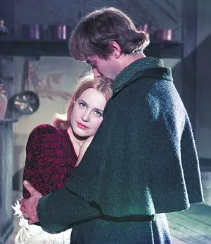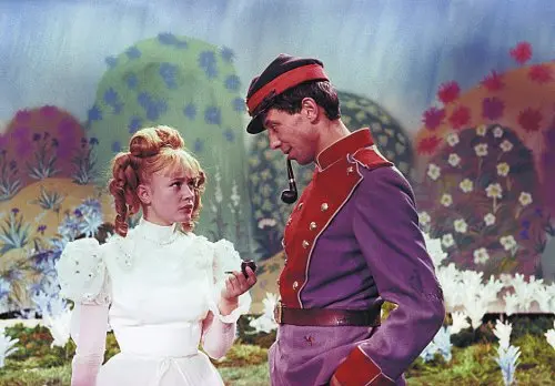 Марина Неёлова в роли Принцессы и Олег Даль в роли Солдата на съёмках музыкальной ленты «Старая, старая сказка». 1968