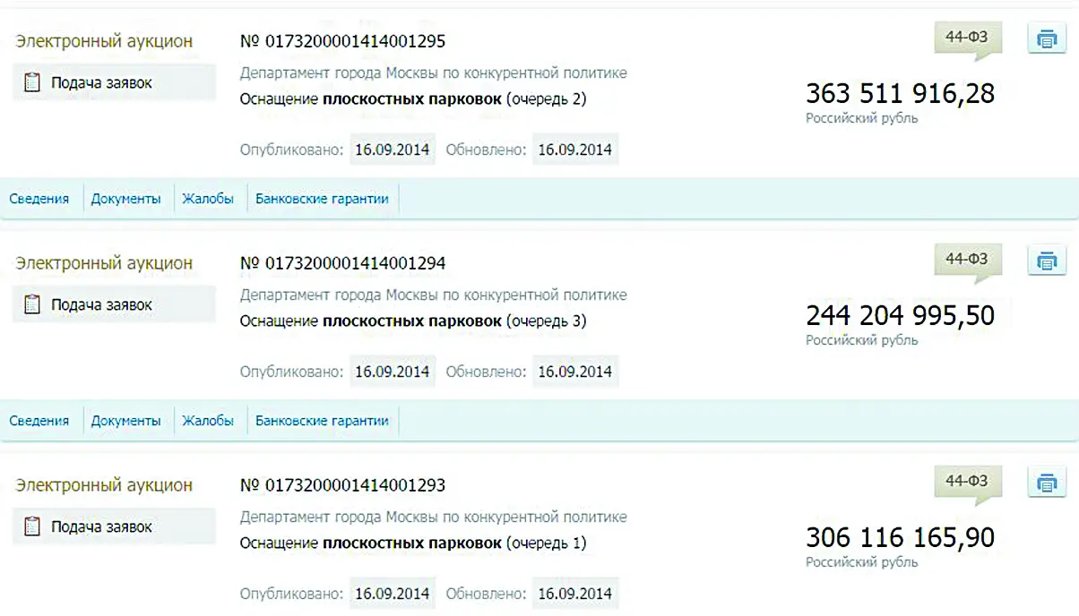 ПОЧТИ МИЛЛИАРД РУБЛЕЙ ПРОШЕЛ ЧЕРЕЗ ЭЛЕКТРОННЫЕ АУКЦИОНЫ, ЧТОБЫ ОПЛАТИТЬ СТРОИТЕЛЬСТВО УЖЕ СУЩЕСТВУЮЩИХ ПЛОСКОСТНЫХ ПАРКОВОК