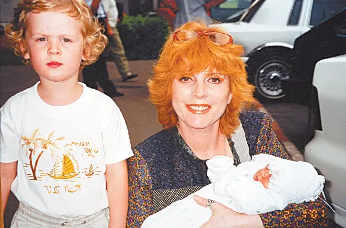 С внуками Лёвой и новорождённой Аней на пороге роддома. Москва. Июнь 2001