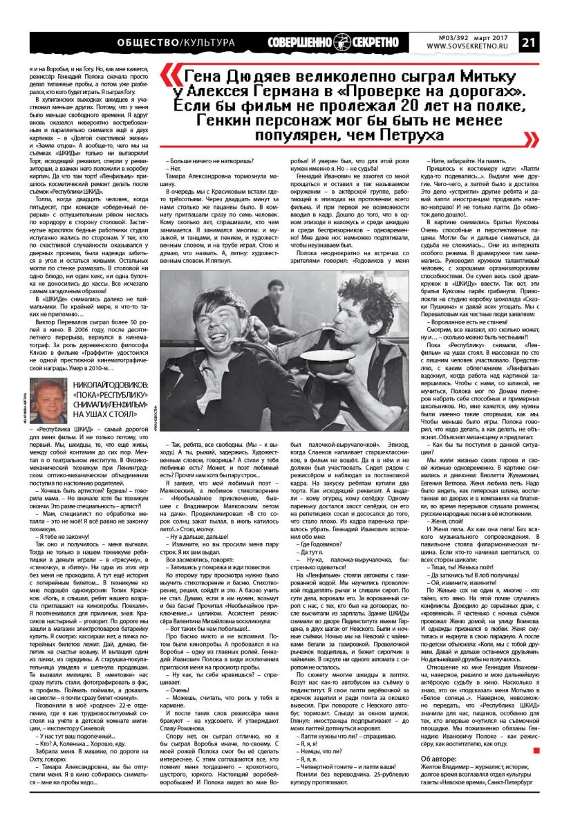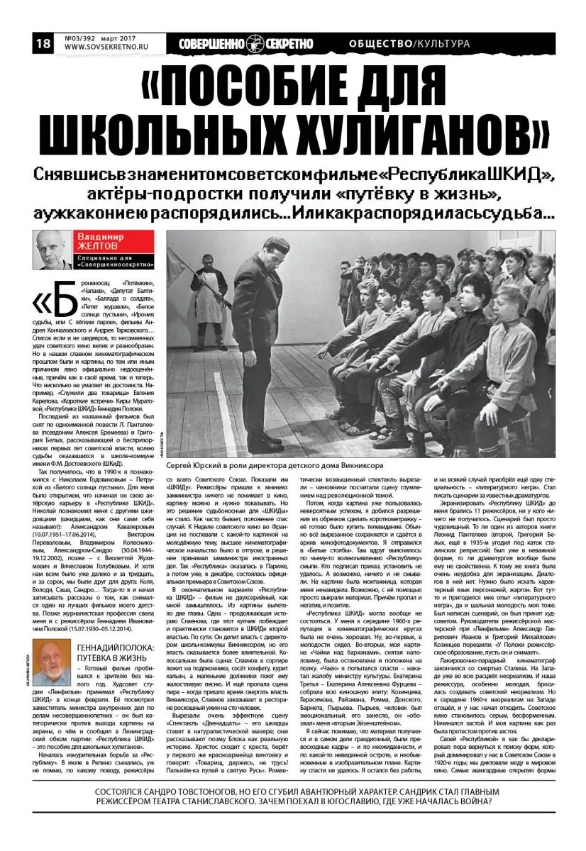 Так получилось, что в 1990-х я познакомился с Николаем Годовиковым – Петрухой из «Белого солнца пустыни». Для меня было открытием, что начинал он свою актёрскую карьеру в «Республике ШКИД». Николай познакомил меня с другими шкидовцами (шкидцами, как они сами себя называют): Александром Кавалеровым (10.07.1951–17.06.2014), Виктором Переваловым, Владимиром Колесниковым, Александром-Сандро (30.04.1944–19.12.2002), позже – с Виолеттой Жухимович и Вячеславом Голубковым. И хотя нам всем было уже далеко и за тридцать, и за сорок, мы были друг для друга: Коля, Володя, Саша, Сандро… Тогда-то я и начал записывать рассказы о том, как снимался один из лучших фильмов моего детства. Позже журналистская профессия свела меня и с режиссёром Геннадием Ивановичем Полокой (15.07.1930–05.12.2014).