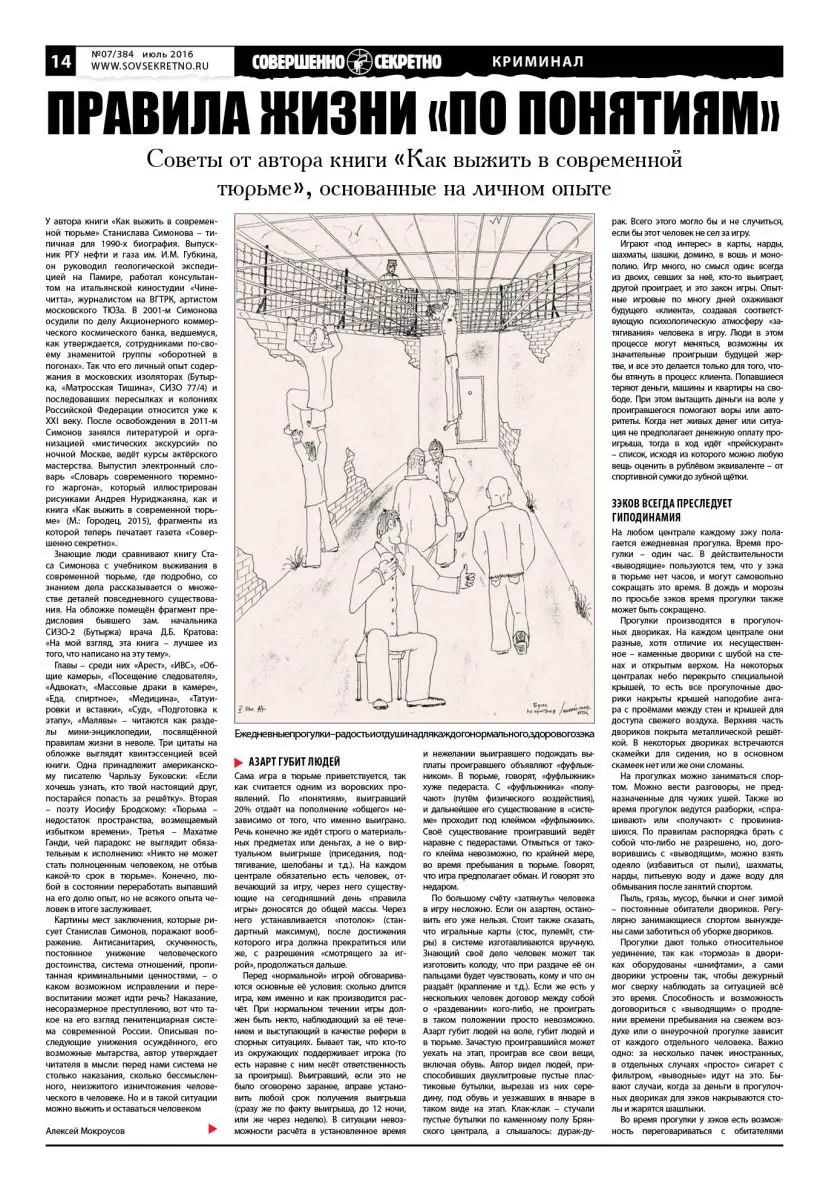 Редакция благодарит московское издательство «Городец» за предоставленный фрагмент из книги Станислава Симонова «Как выжить в современной тюрьме»