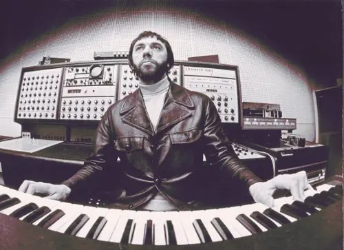 Композитор Эдуард Артемьев в лаборатории электронной музыки. 1970-е