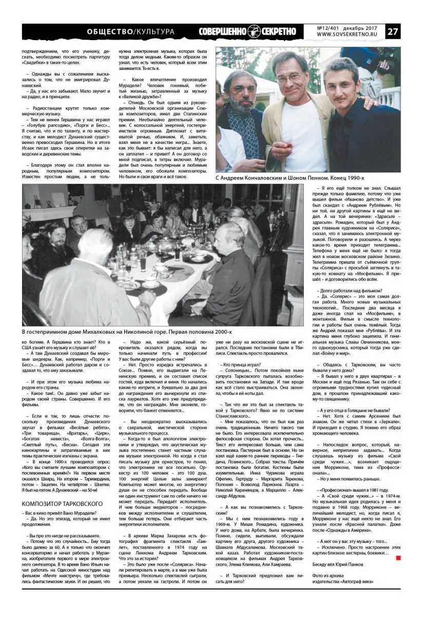 – Я его ещё толком не знал. Слышал прежде только фамилию, потому что уже вышел фильм «Иваново детство». И уже был скандал с «Андреем Рублёвым». Но ни той, ни другой картины я ещё не видел. А на той вечеринке: «Здрасьте – здрасьте». Ромадин, который был у Андрея главным художником на «Солярисе», сказал, что я занимаюсь электронной музыкой. Поговорили и разошлись. А через какое-то время приходит телеграмма… Телефона у меня ещё не было: я тогда жил в новом московском районе Зюзино. Телеграмма пришла от съёмочной группы «Соляриса» с просьбой заглянуть в такую-то комнату на «Мосфильме». Я пришёл – и договорились обо всём.