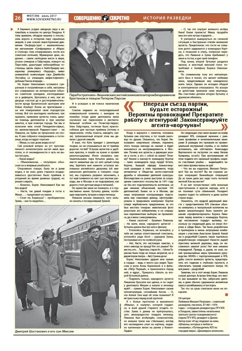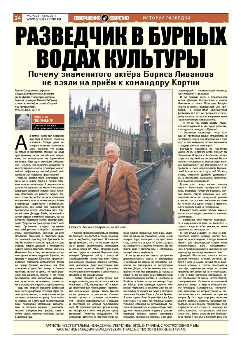 Газета «Совершенно секретно» продолжает публиковать главы из книги «Вариант шедевра», которую бывший разведчик Михаил Любимов готовит к печати (см. ранее: «Старлей под прикрытием», № 6/395, июнь 2017 г.).