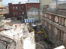 Два года назад, в мае 2009 года, защитникам старой Москвы стало ясно, что в усадьбе происходит что-то нехорошее. Попасть на её территорию было невозможно – по периметру железные ворота и дюжие охранники. Однако шум строительной техники и стук отбойных молотков разносился на всю Большую Никитскую.