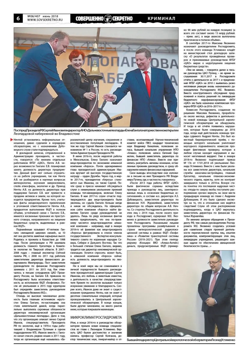 Ни в коей мере мы не сомневаемся в личной порядочности бывшего руководителя президентской администрации Сергея Иванова, его любовь к животным известна, а деятельность в качестве спецпредставителя Кремля по экологии вызывает только искреннее уважение и благодарность. Скорее всего, Иванов даже не знает о существовании гражданина Нечты, как не знает о десятках сомнительных операций, которые проворачивались в Центральной аэрологической обсерватории. В конце концов, были другие чиновники, на много рангов ниже, которые покрывали махинации.