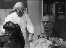 Арно Брекер рядом со своим бюстом-автопортретом, январь 1991 года |