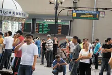 | Торговку насваем на Казанском вокзале (в центре фото) охраняют несколько ее соотечественников. Подобную картину можно наблюдать и на других вокзалах | |
