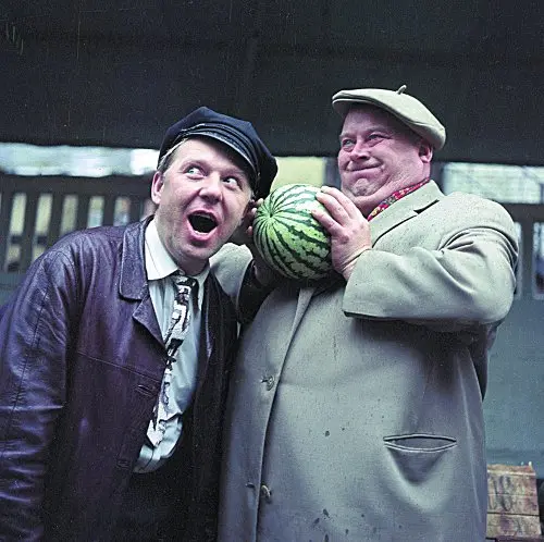Знаменитого комедийного актёра Евгения Моргунова (справа) и Солнечного клоуна связывала многолетняя дружба. Конец 1960-х