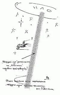 Едва я после полного виража вернулся в исходную точку, как откуда-то сверху вдруг вспыхнул белый свет, и сразу вслед за ним впереди возник слегка наклонный молочно-белый луч диаметром метра два с половиной – три. Он быстро приближался, и, не убери я вовремя крен, самолет непременно врезался бы в него носом или кабиной. И все же я задел луч левым крылом! При этом произошло удивительное: самолет сильно тряхнуло, приборы, работающие от бортового электропитания, мгновенно зашкалило, а белый луч, едва коснувшись крыла, мгновенно рассыпался на мелкие блестки – как во время праздничного фейерверка. «Что за штука? Луч-то, похоже, «твердый»? – подумал я, пытаясь разглядеть через плечо мерцающий столб, уходящий далеко вниз. Но через несколько секунд все исчезло – и луч, и свет вверху...