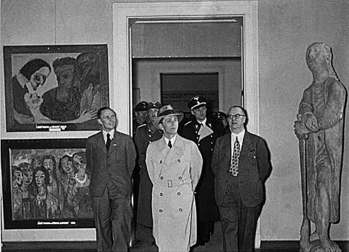 30 июня 1937 года Геббельс издал декрет о создании комиссии во главе с президентом Имперской палаты изобразительного искусства (аналог советского Союза художников) Адольфом Циглером, которая должна была произвести отбор в немецких музеях экспонатов для выставки «Дегенеративное искусство». Зондеркоманда искусствоведов Циглера всего за 10 дней умудрились посетить 28 городов и отобрать в 36 музеях около 700 «упаднических» картин и скульптур. Из этого конфиската к 19 июля 1937 года была собрана «дегенеративная» выставка в полутёмном, с низкими потолками здании Института археологии в Мюнхене. Работы «вырожденцев» были представлены вкупе с рисунками душевнобольных. По поводу открытия Entartete Kunst Гитлер высказался следующим образом: «Мы видим вокруг нас порождения безумия, дегенерации и импотенции». Об ужасности выставки предупреждал плакат у входа: «Беременным и несовершеннолетним вход воспрещен». Рядом с картинами на стенах были сделаны пояснительные надписи: «Проявление еврейской расовой души», «Саботаж интересов национальной безопасности», «Немецкие крестьяне – еврейский взгляд», «Сумасшествие стало методом», «Природа, какой её видит больной мозг», «Еврейское стремление к дикости проявляет себя»…