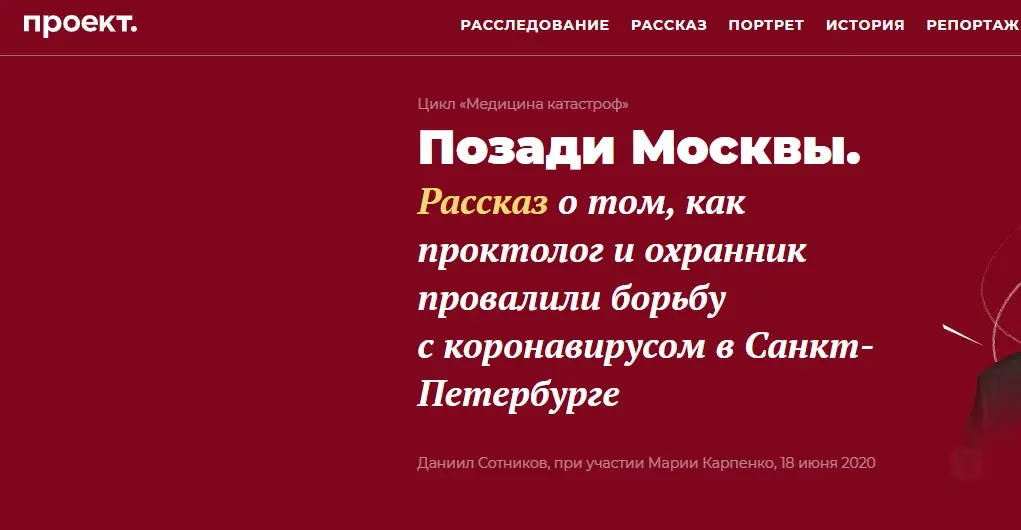 Издание «Проект» во главе с Романом Баданиным давно известно по своим фейковым материалам. Новая статья, посвященная «неудачной борьбе» с COVID-19 в Петербурге стала очередным примером того, как сетевое издание пытается дискредитировать городскую систему здравоохранения.