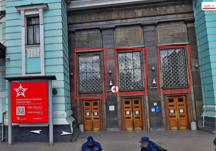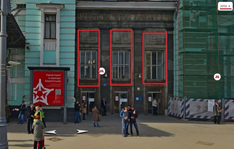 О том, что данное фото было сделано именно в 2019 году и именно перед Белорусским вокзалом, можно догадаться, сравнив фотографии вокзала разных периодов. Еще в 2018 году вход на станцию метро «Белорусская» выглядел вот так. А после реконструкции на окнах и появились решетки, которые видно на снимке выше.
