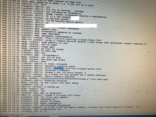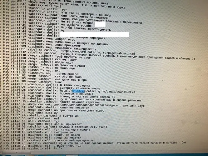 В качестве доказательств кражи у «Конкорд Кейтеринг» журналисты привели переписку редакции с Константином Козловским, который проходит по делу Lurk как организатор хакерской группировки. Также издание прикрепило к расследованию скрин, якобы являющийся частью переписки хакеров.