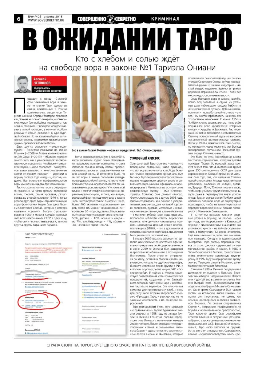 В январе 2009 года эта фирма «по торговле химическими веществами» официально прекратила своё существование, а в июне 2009-го Ониани был задержан и арестован по обвинению в похищении бизнесмена. После этого он отправился по этапу, оставив в Москве своего цивильного, ни разу не судимого партнёра, бывшего советника посла Грузии в РФ, с которым поровну делил акции ЗАО «Экспресстрейд». И сейчас в Москве существует разветвлённая сеть коммерческих предприятий, созданная этим ближайшим деловым партнёром Таро и десятками партнёров партнёра. Эта сплочённая команда уже приготовила и хлеб, и соль для радушной встречи «воровского князя»: «Приходи, Таро, и рассуди нас не по законам ментовским, а по понятиям воровским!»